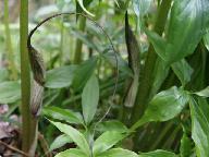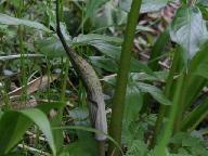 日本人の誰もが知っている浦島伝説で名高い「浦嶋神社」「日本書記」に雄略天皇の御代、水の江の浦嶋子、仙亀にひかれて海神の都にわたり・・云々」とあり、当時の丹後の名族であった浦嶋一族の業績をたたえて創られたという。そんなことをメ-ルで、ふじもと様とやりとりしていると「ウラシマソウ」の花時ですよと付記が書かれていたので早速見に走った