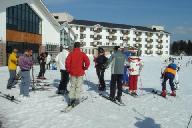 スキ-ジャム勝山ファンタジ-サイト・ゲレンデ中央のファンタジ-・ブラザを4時半の集合時間で銀嶺会一行15名の記念写真を撮ったあと、バラエティ・サイトを麓まで滑り降り4台の車に分乗して、宿泊地の白峰温泉に着いた。