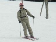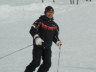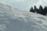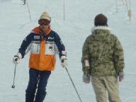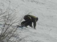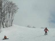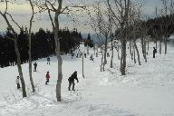 スキ-ジャム勝山リフト最上部からの滑降は、少し鞍部を滑ったあと、1230mのイリュ-ジョンAコ-ス(中級)の長いゲレンデを滑り気持ちが良かった。同行のS指導員はコブコブのついたイリュジョンBコ-ス750m(中・上級)を下りて行かれた。私も恐いのが好きなので、このような斜面には目がない方で下りたかったが、日頃の運動不足を考え今回は遠慮しておいた