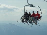 銀嶺会の15人がそろい昼食をファンタジ-ブラザで取った後、全員がイル-ジョンサイトの最高点1320mに行くこととなり、一足先に木下会長のご案内で4人で出発する。一度ファンタジ-サイトの頂上まで上がり、下るゲレンデの途中から分岐してイリュ-ジョンサイトに向かい、一度中腹までのトリプル・リフトに乗り、さらに滑り降りて、最下点960mにあるイリュジョンブラザにつき、頂上までクアッド・リフトで登る