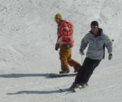 しかし今日のような快晴は望めないだろう。それで皆4時半集合時間まで目いっぱい滑るつもりなのか、なかなか降りてこない。繰り返し次々と颯爽と滑っていく
