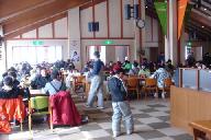スキ-ジャム勝山のゲレンデ中央にあるファンタジ-ブラザで銀嶺会の15人がそろい昼食を食べる。参加会費から各自に昼食代金千円が戻されるので、各自が好きなものを取ってきてたべる。私は何時ものようにカツカレ-にした