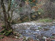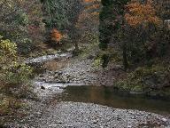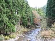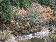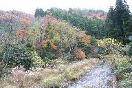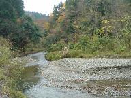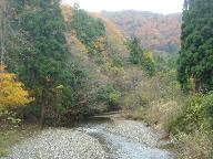 先ほど、女性の方が上流の方に行かれるのが見えたので、山歩きコ-スになっているようだ。川筋に沿ってこの平坦地は拡がっているが幅も広い