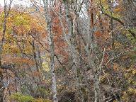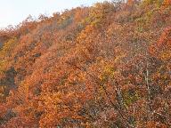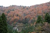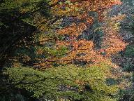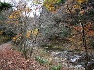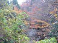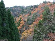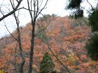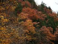 櫃倉林道の紅葉も真っ盛りだが、早くも葉が落ちてしまった樹も混じる。高いところから紅葉が舞い舞いしながら降りてくる。滞空時間を計ると面白そうだ。