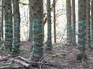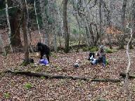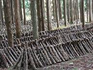 この林にツキノワグマ調査用の有刺鉄線枠(ヘ?ラップ)を設置しています。有刺鉄線が約50cmほどの高さで張られているのでご注意下さい。またこの地域は、ツキノワグマが生息する地域です。入山にはご注意ください。京都府農林部森林保全課