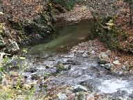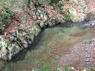 日光が水底まで透過して、澄んでいる流れが綺麗だ
