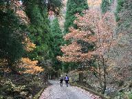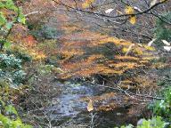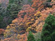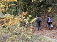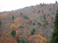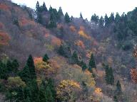 8時にふじもと様が来られ出発する。紅葉の見事な和知町「大野ダム」周辺を通り、小浜から京都へ向かう周山街道・美山ル-トに入る。朝早いので無人に近い「かやぶきの里」を通る(帰りには観光客で混雑していた)。見事な紅葉を愛でながら「芦生山の家」駐車場に到着。長靴に履き替える。家内はポリ袋にいれて手に持った