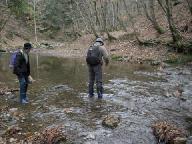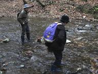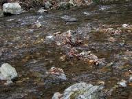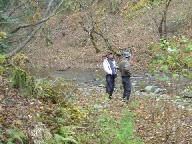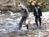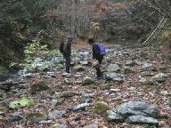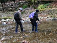 家内は持参した長靴に履き替えふじもと様の先導で川を渉り始めた。流れもかなり速く水深もある。持参の長靴では短く、やっとの渡河になった。ふじもと様は要領よく膝まであり、紐で縛るカバ-付きの長靴を履いていられる。しまった!軽く考え気にもしていなかったが、もっと長い長靴を持ってくるのだったと反省する