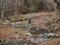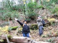 考えてみればスキ-場でスキ-を付けていれば、この位の傾斜は楽に横切れるのだが・・・足場が悪すぎる。上林谷の上流、鳩ケ峰などの沢登りでもこのように崖をへつり渡ることが屡々だが、やはり芦生の由良川源流地帯はスケ-ルが違う。もっと上流なら沢登りも楽だと思いながら歩いた。