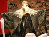 人形着用の古衣装には、延宝三年(1675)在銘の紺地菊唐草文金襴小袖(こんじきくからくさもんきんらんこそで)及び正徳元年(1711)在銘の萌葱絽地牡丹文(もえぎらじぼたんもん)色入金襴大口袴(きんらんおおぐちはかま)がある。また右前掛の波濤飛龍図(はとうひりゅうず)は中国綴織。これは明朝最後の君主尚寧王(しょうねいおう)が師にあたる京の袋中上人に献上した十六世紀の織物で、現在京都国立博物館に保管されている明時代の貴重なものである。