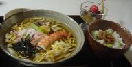 築460年という風格のある町家に一歩入ると、まるで江戸時代にタイムスリップしかかのような佇まい。こちらでは高い天井や黒光りする柱、階段箪笥、古い井戸もそのままの落ち着いた雰囲気のなか、名物の一本うどん「たわらやうどん」が味わえます。