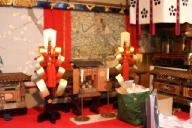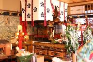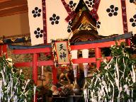 また人形をかざる町屋の一階は、特に折上格天井(おりあげこうてんじょう)につくられ、この人形が御身躰として大切にされている様子がうかがえる。京都市