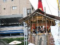 鉾は、車付きの移動舞台で、笛や太鼓の囃子に合わせて稚児が舞を披露した。