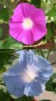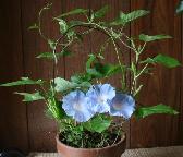 シルバ様からいただきました種子で朝顔部(どぶろぐ・花環の会)から育てた朝顔が芯を止めたのでもう咲きました。