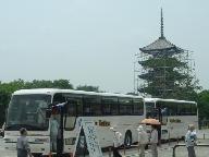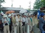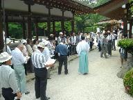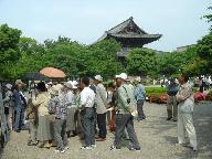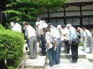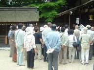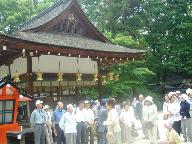 いつもなら続いて1号車の記念撮影となるのだが、待っていても楼門前にやってこない。しびれを切らして迎えに行く。上賀茂神社の本殿・権殿参観は少人数づつしか参拝できないとはあらかじめ聞いてはいる。