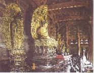 このお寺にはアショーカ王以来の伝統に従って、仏法によって国の平和が護られ、その光が世芥の隅々にまでいきわたるようにということと、それぞれの思想が共に侵さず共存していく原理を見出し仕え、共々に力を合わせ実現されていくようにとの大師の願いが込められています。東寺の伽藍は南大門を入って金堂・講堂、少し隔てて食堂が一直線に置かれ、左右に五重塔と灌頂院が配置されています。塀で区別された境内はそのまま曼茶羅であり蜜厳浄土であります。我々はそこから様々なメッセ-ジを汲み取ることができます。