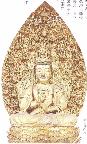 金堂本尊の薬師如来坐像と日光、月光の両脇侍菩薩像です。光背上には七躯の化仏を配して七仏薬師をあらわし、台座の周囲には十二神将像を配しています。これら三尊像は桃山時代の犬仏師康正の作で密教的な薬師信仰の形をとどめています(入場パンフレットより)