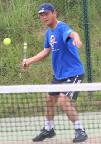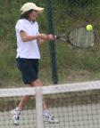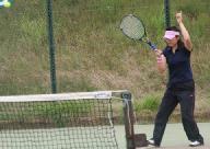 一日目の男子、女子の各シングルスは先々週に小雨模様の中で終了。昨日曜日は、男子、女子の各ダブルス試合の予定。朝からの降雨で順延かと思われたが幸い雨が上がり、試合開始時間を11時にづらして実施された。日の長い時節と1昨年完成した夜間照明も利用できるので、この点大変便利になった。