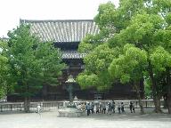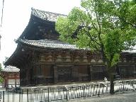 金堂は東寺一山の本堂で延暦十五年(796)創建されたと伝えられています。文明十八年(1486)に焼失し、今の堂は豊臣秀頼が発願し、片桐且元を奉行として再興させたもので、慶長八年(1603)に竣工しました。天竺様の構造法を用いた豪放雄大な気風のみなぎる桃山時代の代表的建築ですが、細部には唐・和風の技術も巧みにとり入れています。(入場パンフレット)