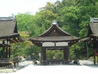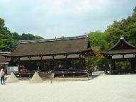 本殿・権殿(ごんでん)東西に並び建ち、共に流れ造の典型として国宝に指定されている。文久三年(1863)の造替で、他の祝詞舎(のりとのや)、透廊(すいろう)等四十二棟の建物は、おおむね寛永五年(1628)の再建で重要文化財に指定されている。又、境内全域は平成六年(1994)十二月十七日「古都京都の文化財」の1つとしてユネスコが制定する人類共有の世界文化遺厘に登録された。(入場パンフレットより集録)