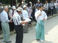 ここで「献上・紀州梅道中」の一行が登場。予期せぬハプニング1号車の会員の姿も行列見物の向こう側に垣間見えるが、私は続いて楼門内の撮影に回ったので連絡のとりようなし。