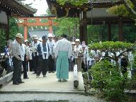 写真:大師堂(御影堂)参拝へ山門をくぐり移動する