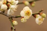 自宅横の細い道淵に梅の木が三本生えている。道路と宅地(家)に挟まれて窮屈そうだが毎年実をつける。四つ尾山の日陰になり盆地の高台にあるので開花が遅い。今年は公共下水路工事で周りが掘り返され、根を切られているので実を付けるだろうか?