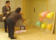バン!という破裂音を気にしながら、ダ-ツを投げるA夫人(写真)