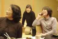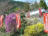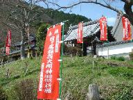 温泉に着くと宴席隣の控え室に荷物を置き、入浴券を貰ってあやべ温泉(二王の湯)につかる。外湯から美山町市境に連らなる、上林の山々と頂上付近の林道に咲く山桜が遠望できる。久しぶりに頭を洗った。部屋に戻り記念写真を撮る。