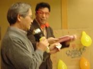 ところが解答には手順がいる仕組みだ。①オ-ディエンス(拍手など)か②携帯電話による相談かを選ぶ。②を選んだ。携帯に手を出した人と「もしもし・・」/「はいはい・・」と相談して答えを出す。司会者は、綾部市のホ-ムペ-ジをプリントアウトしたファイルを見ている。全員が参加してワイワイガヤガヤと答えが出て、正解になれば終了。