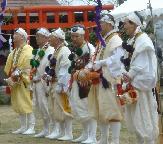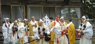 09;40から子供神輿が出発ですが、大槻正明宮司、今修業中のS・Yさん(白い服装、でなんと小生の長男がホテル綾部で結婚したさい、綾部高等学校のカルテットのバンド演奏してくれ彼女達のひとりでした。)そして、神社総代さんで、バックに「子供神輿」一行が高津中を練り歩きます。