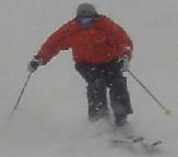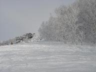 風が止み少し滑りましたが、下りることになり、リ-ゼン・スラロ-ムという、国体滑降コ-ス(本年のオリンピック・コ-スにもなった)を滑り始めました。この冬は積雪量が少なく、例年よりも幅の狭い大変な難コ-スでした。