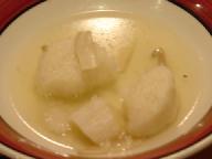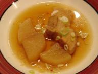 「ジャガイモ」の形が崩れるほど煮込んであるが、「ちくわぶ」にはまだ味がしみ通っていない。小麦粉の味がして美味しくない。底の焦げた「ちくわぶ」だけが何とか美味しく食べられた。