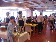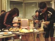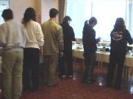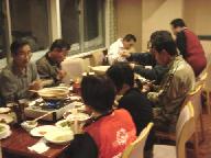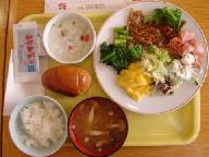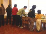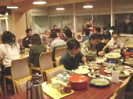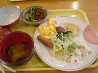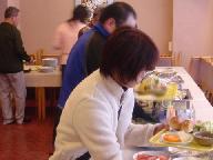 スキ-用具を地階の乾燥室に運び込み、用意された着替え室に荷物を置き、朝食を取る。朝食はバイキングで別会計1000円(到着時間不安定で予算外)。好きなだけ皿に取って食べられる。和食あり洋食あり、ご飯、みそ汁、パン、飲み物などお変わり自由。