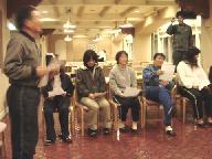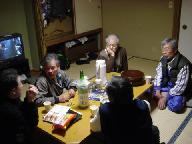 )一升瓶を持って訪れた、綾部市スキ-協会副会長のO氏を囲んで話が弾む。
