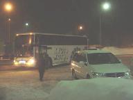 前夜の10時綾部を出発、舞鶴からかなりの吹雪の中を走行して、敦賀から北陸高速道に乗り大型バスは、二人の運転手の努力でチェイン操作も順調に行われ、予定の朝7時前には高天原スキ-場、ホテルタキモトに到着した。