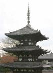 高さ51メートル。古塔としては、京都の東寺の五重塔55メートルに次ぐ高さで、天平二年(730)藤原不比等の娘・光明皇后の発願で建立。現存の建物は、室町時代の応永十三年(1426)に建てられた六度目の室町時代の建物ながら、全体に創建当時を伝える純和様の名建築である