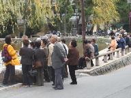 大きなカメラを持って写真を撮っていると、修学旅行の生徒グル-プから写真撮影を頼まれる。気持ちよく引き受けて、各自好きなポ-ズをするように話しかけて撮る。大抵はフィルム・カメラと云うのか、使い捨てが多い。また小型カメラのグル-プもあり、一つのカメラを仲間で使い、互いに写しっこしているが、時には全員で撮って欲しくて、写真に強そうな人を見込んで頼んでくる。大体同じあたりをぶらついているので、帰りに何処から来たのなど声をかける。愛知県など、結構遠くから来ているようだ。