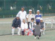 今年は舞鶴市テニス協会が主管。参加者70名。A/Bの2ゾ-ンに分かれ、7名づつの5チ-ムが総当たり戦の各4ゲ-ム。最後にA/Bゾ-ンの順位決定戦が行われ、ほとんどの選手が5ゲ-ムをこなすとあって、和気藹々のテニス三昧の一日となった。