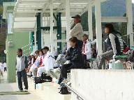 数年前に麺数を8面から10面に増やすと共に、中央に応援観覧席を設け、コ-トの出入りが他のコ-トを通らずに自由に出来るようになった。試合中にそのコ-トの裏を回って指定コ-トに入るに気を遣うことがないので楽である。