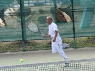5ゲ-ムのノルマだが、7人編成なので一人多く、無理を言って3ゲ-ムに出させていただいた。4-6、5-6、4-6で3ゲ-ムとも善戦したが負けてしまった。(6ゲ-ム先取、ノ-・アドバンテ-ジ)