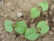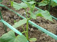 杭4本、プラポール6本、ネット周長16mで間に合った。約10平方米のスイカ畑。