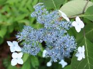 下村集会所に駐車し、伊佐津川を渡り、蓮ケ峯への山道を辿り、中腹の稜線近くに登ると「ヤマアジサイ」の群生地が見えてきた。ここまで登りのに汗びっしょり。空梅雨でも蒸し暑い。山野草は汗して登って自生地で見るのがやはり一番!。山の宝石だ。