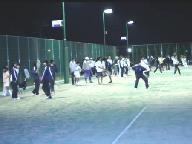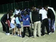 練習風景:コート3面の夜間照明の下で