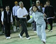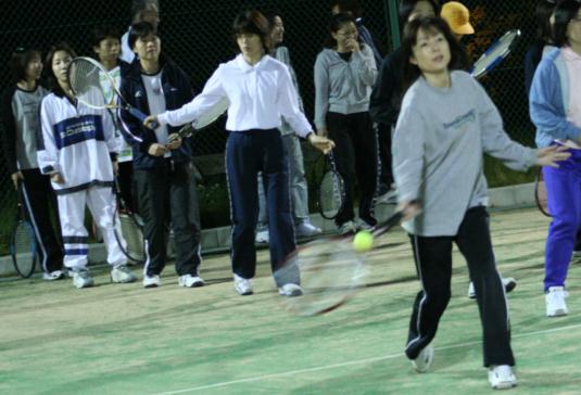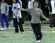 かなりの年輩者も元気に参加されている。生涯スポ-ツにテニスは良い。他市では、80才を超すようなテニス愛好者も見かけるように、テニスの年齢は、幼年者から高齢者まで幅が広い。一見、走り回るので過激な運動に見えるが、自分なりの技量で楽しめるスポ-ツである。一度フォ-ムが出来てしまえば硬式の方が楽で、ソフトテニスは腰のバネが必要など若い柔軟な体力を必要とすると思う。技術的には硬式の方が安定して打つのが難しいし、世界レベルまで考えると、プレ-の奥が深い。
