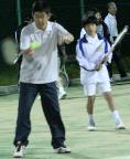 昨年からのジュニア育成テニス教室で、かなり打てるようになっている。また新しいジュニアも参加。今回は各自の技能の程度にクラス分けして、一般と一緒に練習。