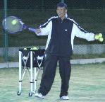 球出しのあと、ボレーで返して連続して打たせる。ストローク・ラリーで打たせる・・、試合形式のシュミレーションを組んで打たせる、と高度化していきます。