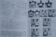 有本選手に聞くと一人で取材して編集されたものだと言う。大変な労作である。毎年感心して見せていただいている。対戦組み合わせに結果が書き込まれている。最後まで残っていないと普通取材できない。トロフィ、賞状を手にした選手が写っている。ダブルスはペアでうれしそうだ。この写真撮りも並大抵では出来ないことだ。