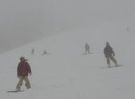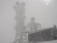 奥神鍋頂上は、ミルク色のもやの中に沈みリフト小屋も立木も見えない。