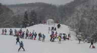 ゲレンデでは大阪府クラブ対抗をやっていた。スタ-ト地点に集まった選手。